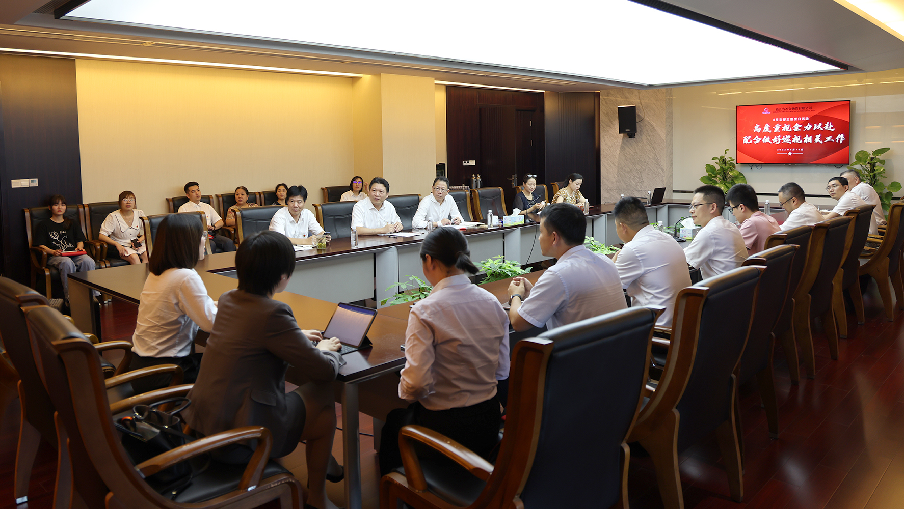 近日,冶金物資黨委組織各黨支部聯合開展主題黨日活動,同時,第一黨支部還與寧波銀行九堡支行黨支部開展了支部共建互聯活動。活動旨在引導廣大黨員干部提高政治站位,并在黨支部的互學互鑒中激發黨建活力,提升工作效能。本次活動由冶金物資黨委書記、董事長鄭浩召集,黨委委員、副總經理陳建主持。公司黨委委員、總經理徐華金,黨委委員、紀委書記陳洪琳;寧波銀行杭州分行財富管理部副總經理陳穎以及冶金物資全體黨員、入黨積極分子,寧波銀行九堡支行黨員、業務骨干等近50人參加了此次活動。